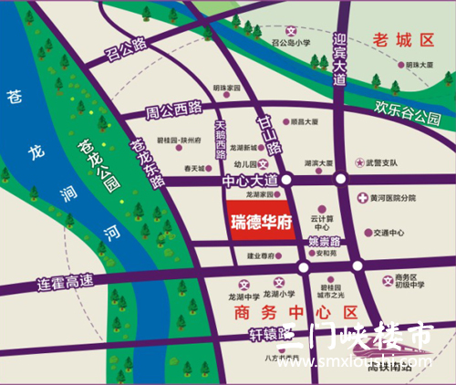 高铁为邻:三门峡南高铁站、学校云集:龙湖小学、召公岛小学、商务区初级中学、医院护航:近邻黄河医院分院,国家大型三级综合性医院;妇幼保健院、市政公园:苍龙湿地公园、青龙湿地公园、天鹅湖公园、庙底沟遗址公园、高端办公:湖滨大厦、云计算中心、武警支队等