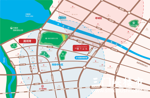 滨河小学(三门峡市一小南校区)、召公岛小学、阳光小学 龙湖小学、中学、医疗配套:三门峡市医院、三门峡妇幼保健院,黄河医院分院、公园配套:13万平米青龙谷公园, 44万平米的庙底沟遗址公园、33万平米欢乐谷公园、商业配套:义乌商贸城