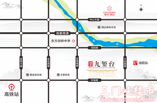 博丰·九玺台项目位于三门峡市商务中心区,北临伯阳路,南临轩辕路,西临甘棠路,东临大岭路。项目紧邻东方剑桥中学(甘棠南路与伯阳路交叉口西北角),靠近高铁三门峡南站,交通便利。项目总占地127.48亩,总建筑面积约35万平方米,同期开发14栋楼。住宅小区由高层住宅、低层商业组成。