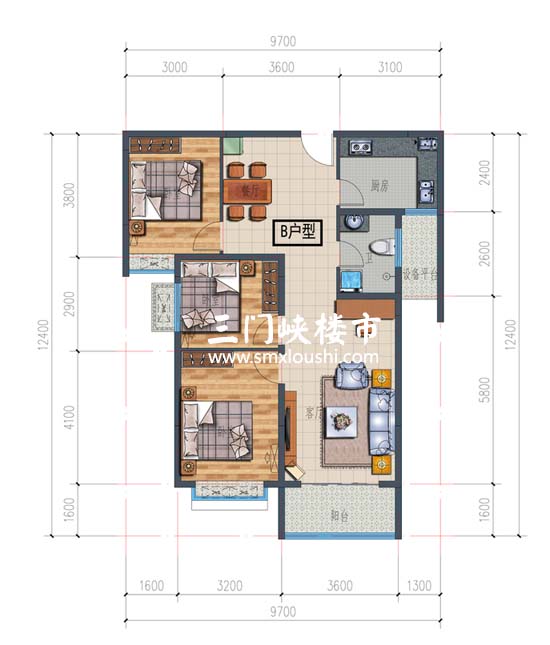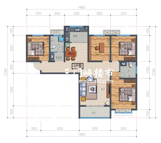 三室两厅一卫约106平米 布局合理,节约空间,紧凑三室一样全明设计,节约资金同时一样享受高端生活美学;。