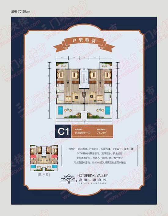 65.03-74.21m²两室两厅一卫、87.98m²三室两厅一卫、108.55m² 三室两厅两卫