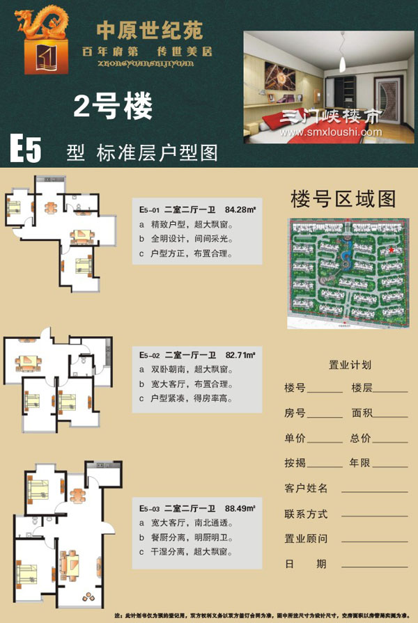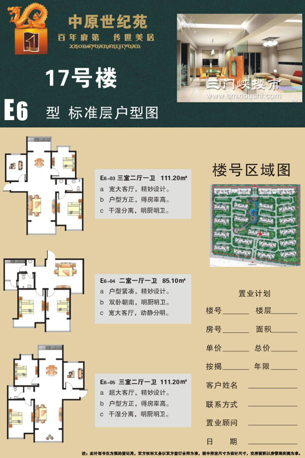 中原世纪苑是由三门峡市中原置业有限公司投资开发建设,加拿大LSK国际建筑师事务所规划设计的住宅小区,项目预计投资6.8亿元。小区位于主城区崤山中路至河堤北路之间,建筑面积30万平米。商业、托儿所、会所、地下车库、物业配套齐全,景观优美。小区共有6至24层造型典雅别致的楼房37栋,12种楼型,81种户型,面积从43㎡-230㎡,可容纳住户2100多户,目前是三门峡市最大、设施最完善、理念最先进的居民社区。