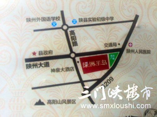 洛阳银行、工商银行、农业银行、建设银行、农村信用社、中国银行、餐饮街、KTV、陕县第一人民医院、陕县职高、陕县一高、陕县二高、陕县实验幼儿园、甘棠公园、高阳山风景区