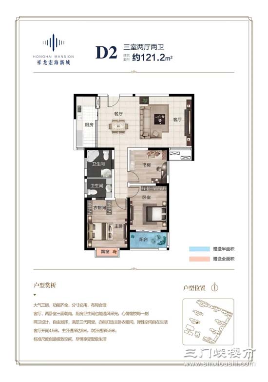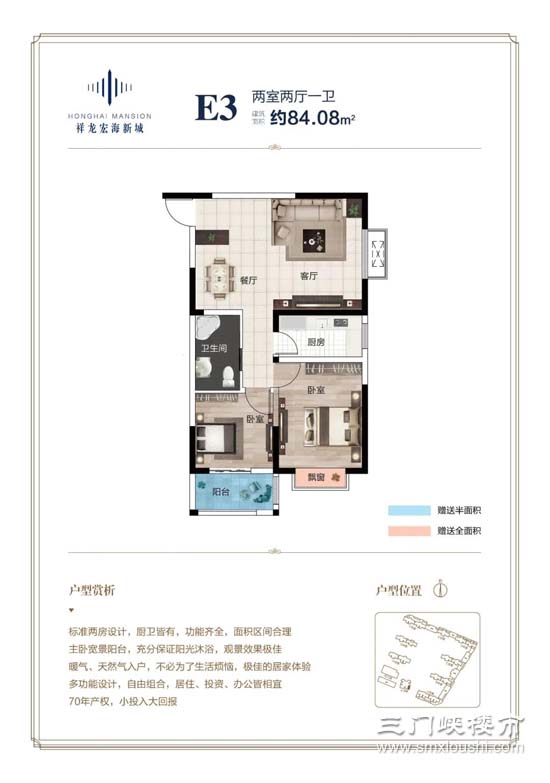 祥龙·宏海新城,建筑面积约80-146㎡水岸美宅,远眺壮丽山河,俯瞰万家灯火,极致视野,心旷神怡。于奢阔静谧的生活空间中,纵观四季园景变换,品味人生臻境!当温暖的阳光透过阳台飘窗肆意的照射进房间的各个角落,父母与孩子的笑声传入耳畔,孩子在父母身边快乐的嬉戏,温馨的画面尽收眼底。