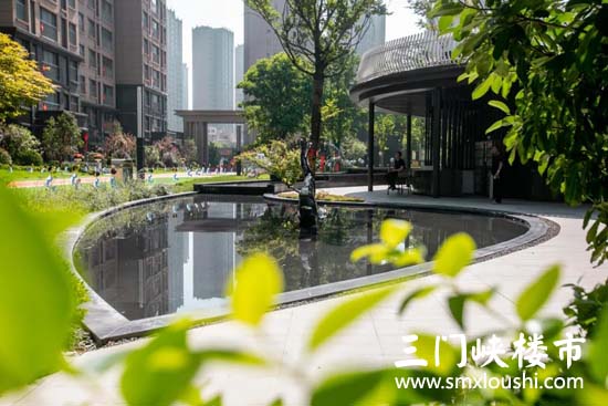 居于此,不止园林风景,更有近在咫尺的生活真意,亭子里,树荫下,长者促膝长谈,草坪上,滑梯旁,儿童嬉戏打闹,容纳全家的幸福时光。