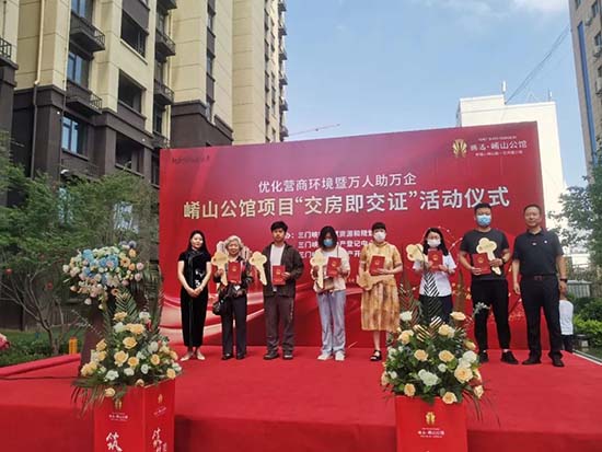 业主代表在现场激动的表示,“交房即交证”是比千言万语更有说服力的安心;以往购买期房需要两到三年甚至更久才能拿到不动产权证,甚至还有人入住多年都无法拿到产权证,给子女入学、房屋转赠转让、抵押贷款等问题造成了不小的障碍;一手拿钥匙、一手拿房本,对购房者来说,就像吃了一颗定心丸,很开心自己当初明智的选择。这离不开鹏远崤山公馆项目的积极努力,更要感谢各级政府办事的高效性和为群众办实事的理念。