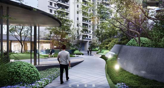 景观由上市公司“深圳奥雅”执笔担纲,首层功能还给城市后,二层留给社区内部,据此形成一系列立体的屋顶绿化,主景观轴线将内部景观节点排列重组为:“一面、一轴、一环”的多场景、聚场式、度假森活。社区入口重金打造下沉式会所,构建“艺术审美、城市社交、共享阅读、亲子时光、山水游园、品质会客”等六大功能,使得空间和建筑真正做到服务于人。
